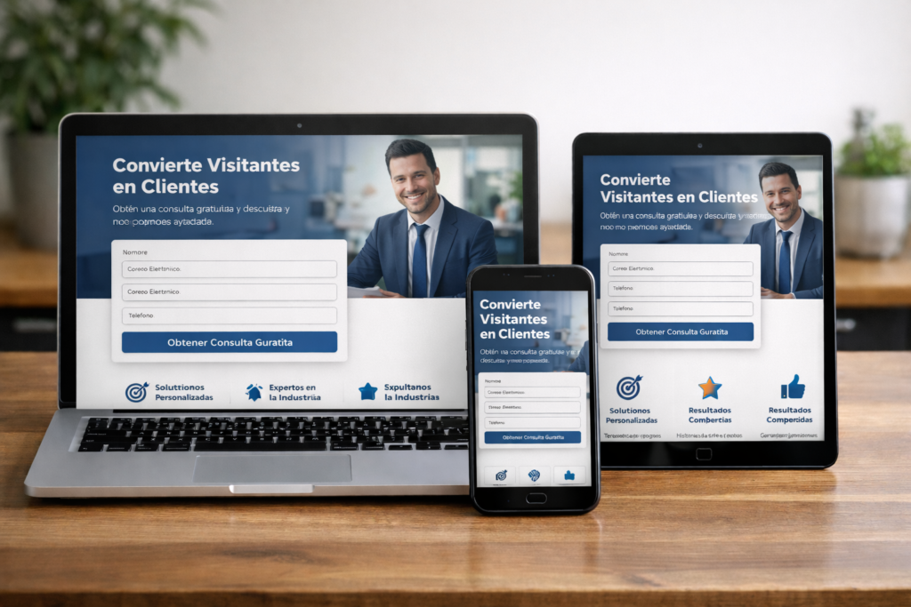 Una página única diseñada específicamente para convertir visitantes en clientes o conseguir sus datos de contacto.