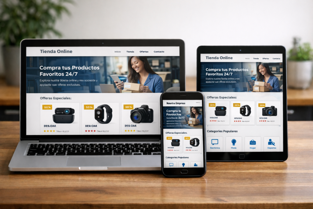 Una tienda virtual completa donde tus clientes pueden comprar productos las 24 horas del día.